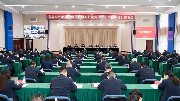 为进一步传达学习党的二十大精神,贯彻落实国务院国资委党委部署要求,对全集团齐心协力抓好抓实抓细党的二十大精神的学习宣传贯彻工作进行动员部署,不断推动党的二十大精神在东方电气集团进一步落地生根、开花结果,10月27日,东方电气集团党组传达学习贯彻党的二十大精神动员部署会召开。
