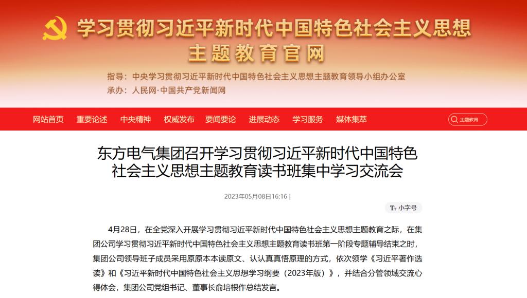 [主题教育官网]东方电气集团召开学习贯彻习近平新时代中国特色社会主义思想主题教育读书班集中学习交流会