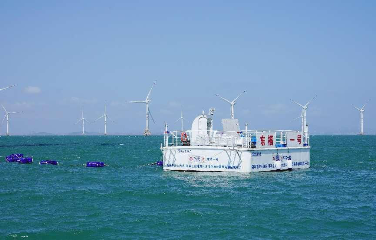此次海上中试于5月中、下旬在福建兴化湾海上风电场开展,使用的是由东方电气集团与中国工程院谢和平院士团队联合研制的全球首套与可再生能源相结合的漂浮式海上制氢平台“东福一号”,该平台也是海水无淡化原位直接电解制氢海试样机,集成了原位制氢、智慧能源转换管理、安全检测控制、装卸升降等系统于一体,在经受了8级大风、1米高海浪、暴雨等海洋环境的考验后,连续稳定运行了超过240小时,验证了由中国科学家原创的海水无淡化原位直接电解制氢原理与技术在真实海洋环境下的可行性和实用性。