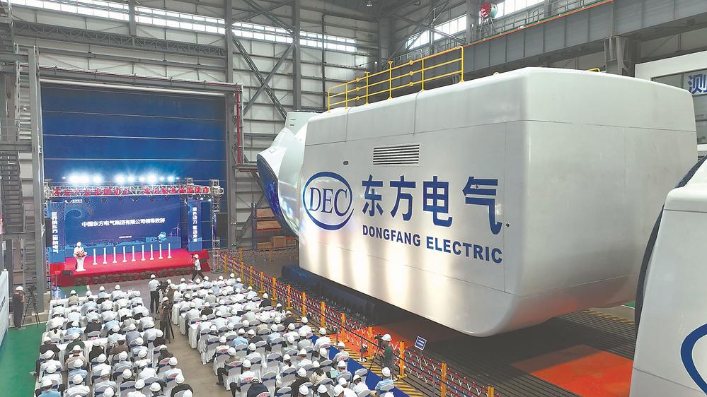 东南网11月11日讯 (福建日报记者 林侃 文/图) 10日,由中国东方电气集团有限公司联合中国华能集团有限公司研制,拥有完全自主知识产权的18兆瓦直驱海上风电机组在位于福清市的东方电气风电(福建)有限公司生产基地顺利下线(上图)。这是目前已下线的全球单机容量最大、叶轮直径最大的直驱海上风电机组,机组关键部件完全实现了国产化。
