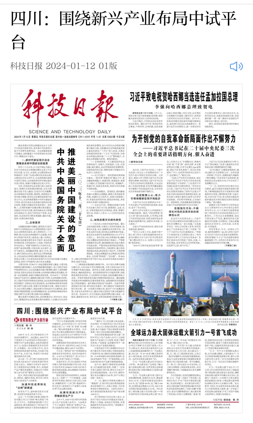 [科技日报] 四川:围绕新兴产业布局中试平台