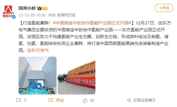 [国资小新]【打造氢能集群!#中国首座中欧合作氢能产业园正式开园#】