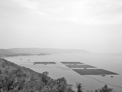 由中国东方电气集团国际合作有限公司承包建设的泰国孔敬府乌汶叻水面漂浮光伏电站3月5日并网发电,助力泰国可再生能源发展。泰国乌汶叻水面漂浮光伏电站位于泰国东北部孔敬府,是泰国电力局第一个集水面光伏、清洁水电、高效储能系统及智慧能源管理系统于一体的示范性电站工程项目。图为5日拍摄的泰国孔敬府乌汶叻水面漂浮光伏电站。 新华社发