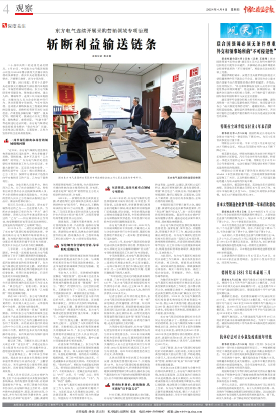 [中国纪检监察报]东方电气连续开展采购营销领域专项治理 斩断利益输送链条