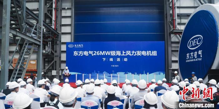 26兆瓦级海上风力发电机组下线现场。中国东方电气集团有限公司供图