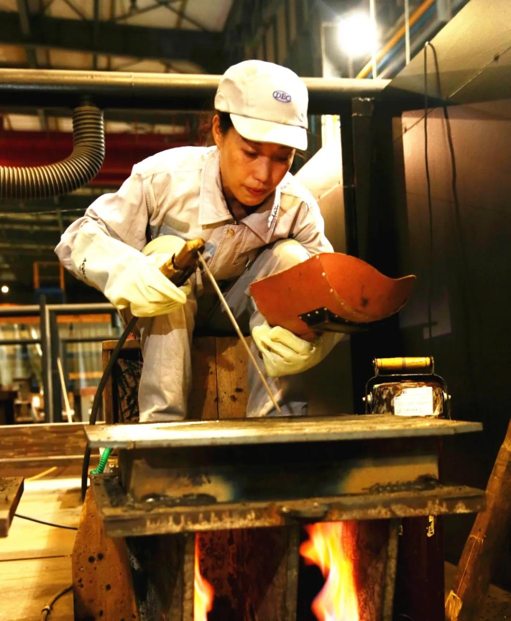 她手中的焊枪如同画笔