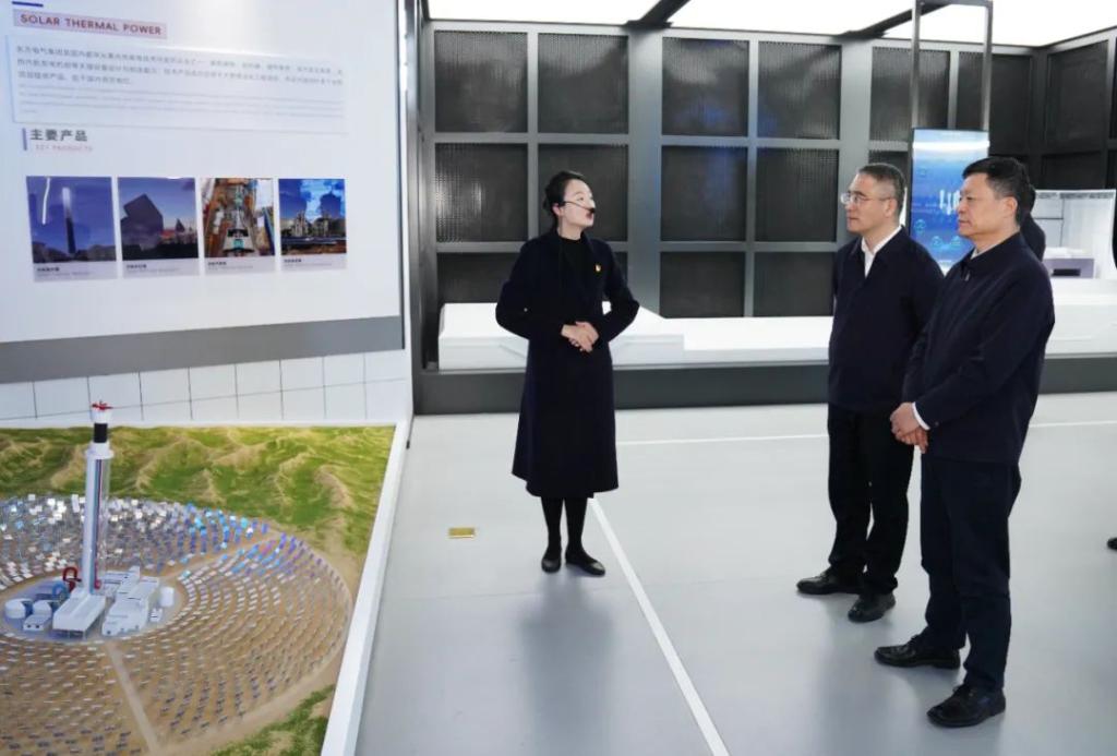 在俞培根的陪同下,谷澍一行还参观了东方电气科技展示厅,深入了解东方电气集团的发展历程、产业规划与布局、科技创新等情况。